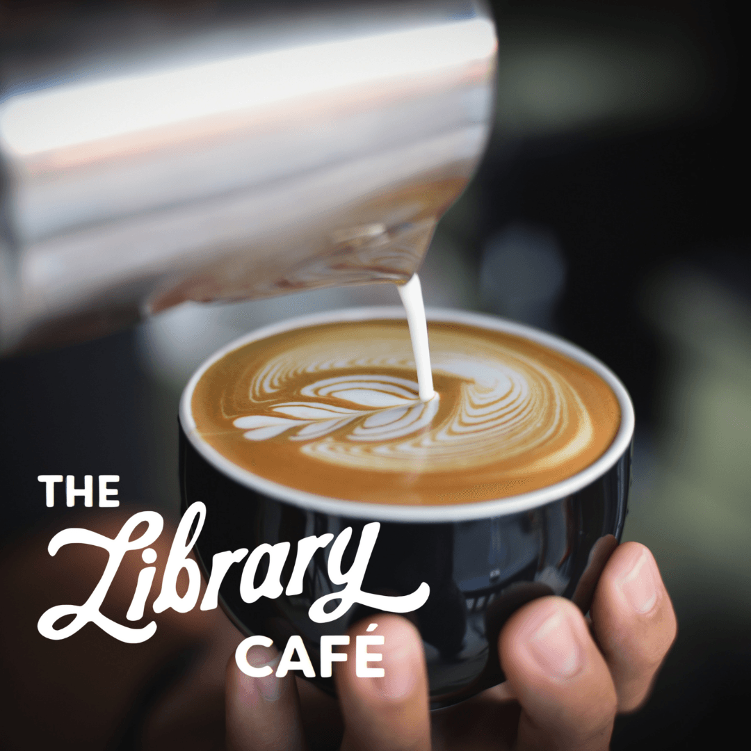 The Library Café serves whole bean coffees along with fresh, rich-brewed, Italian style espresso beverages, premium teas, and a variety of pastries.